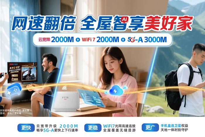 🔍 关键词提示:电信300M宽带多少钱、500M宽带适合打游戏吗、千兆宽带适合什么家庭用、多人同时上网选多少兆